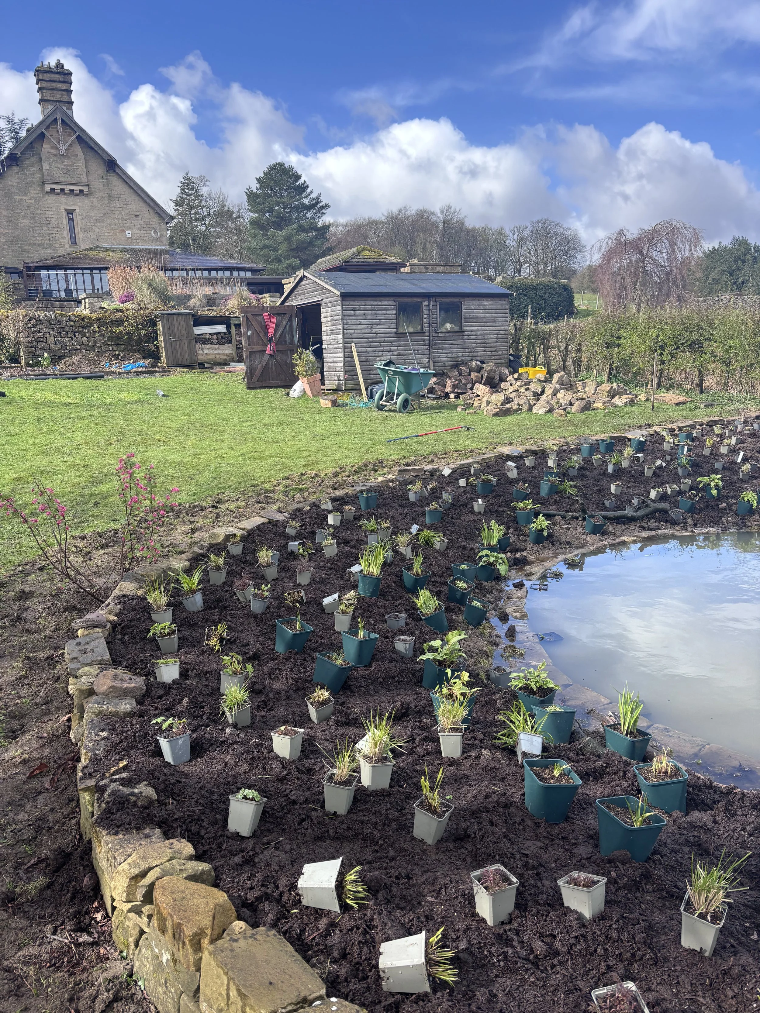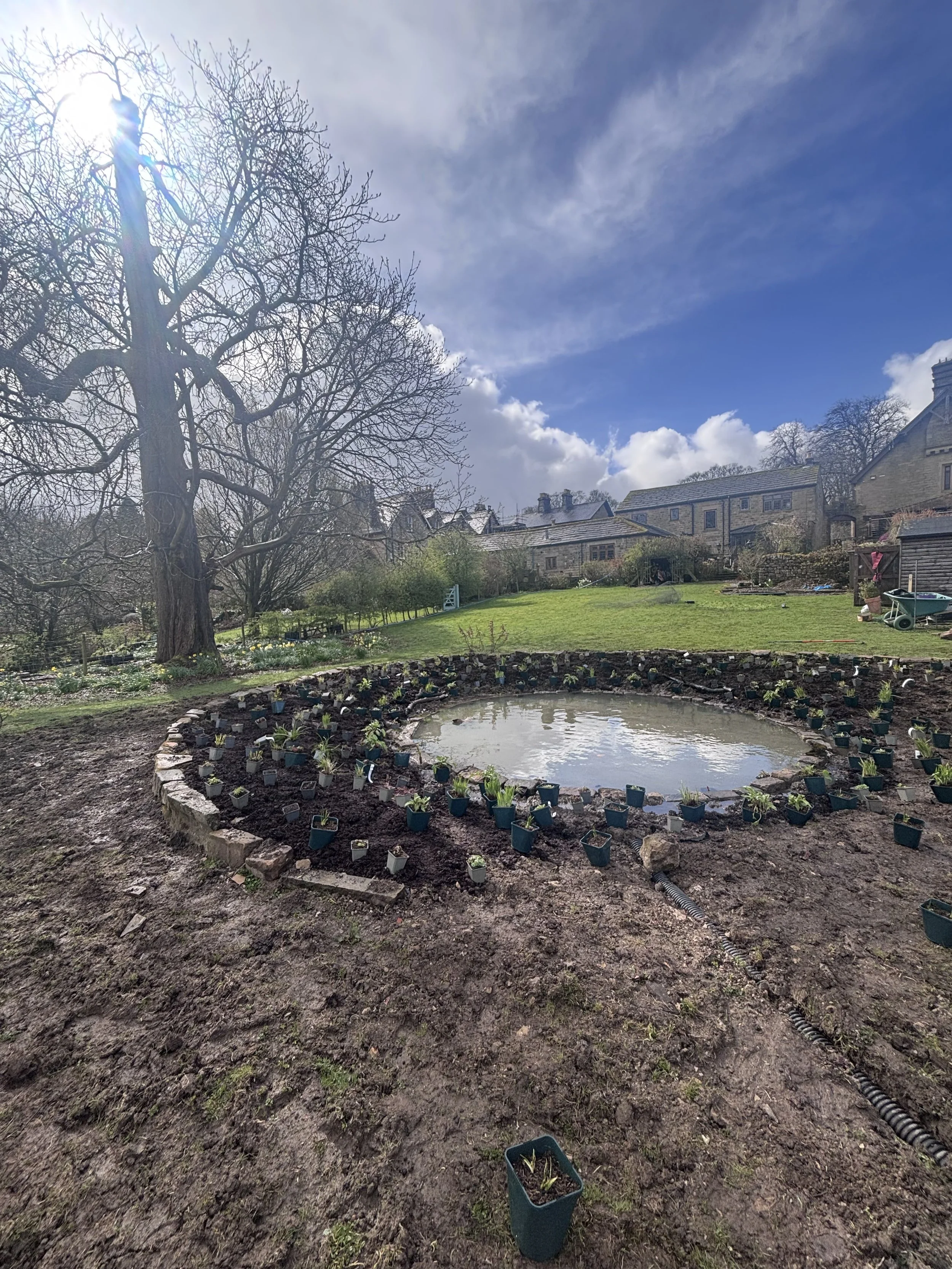 We are hoping to dramatically increase the wildlife and aesthetic value of the site. The client wanted a use for a stone ring they had built in the garden, which filled up in times of heavy rain.